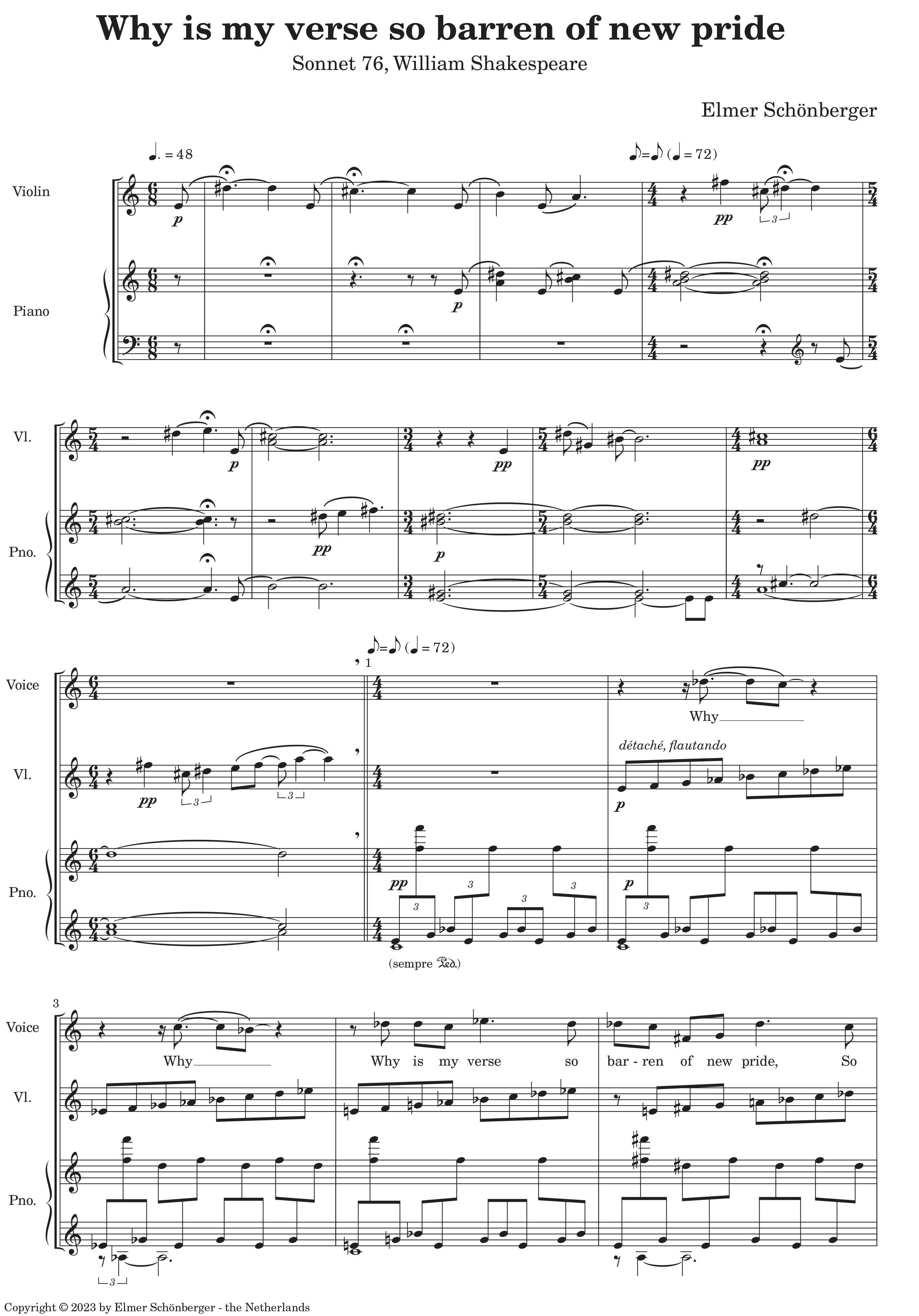 Why is my verse so barren of new pride, zoals de eerste regel van Shakespeares Sonnet LXXVI luidt, is een nieuwe versie van de ‘Song’ uit …dressing old words new…(2004)